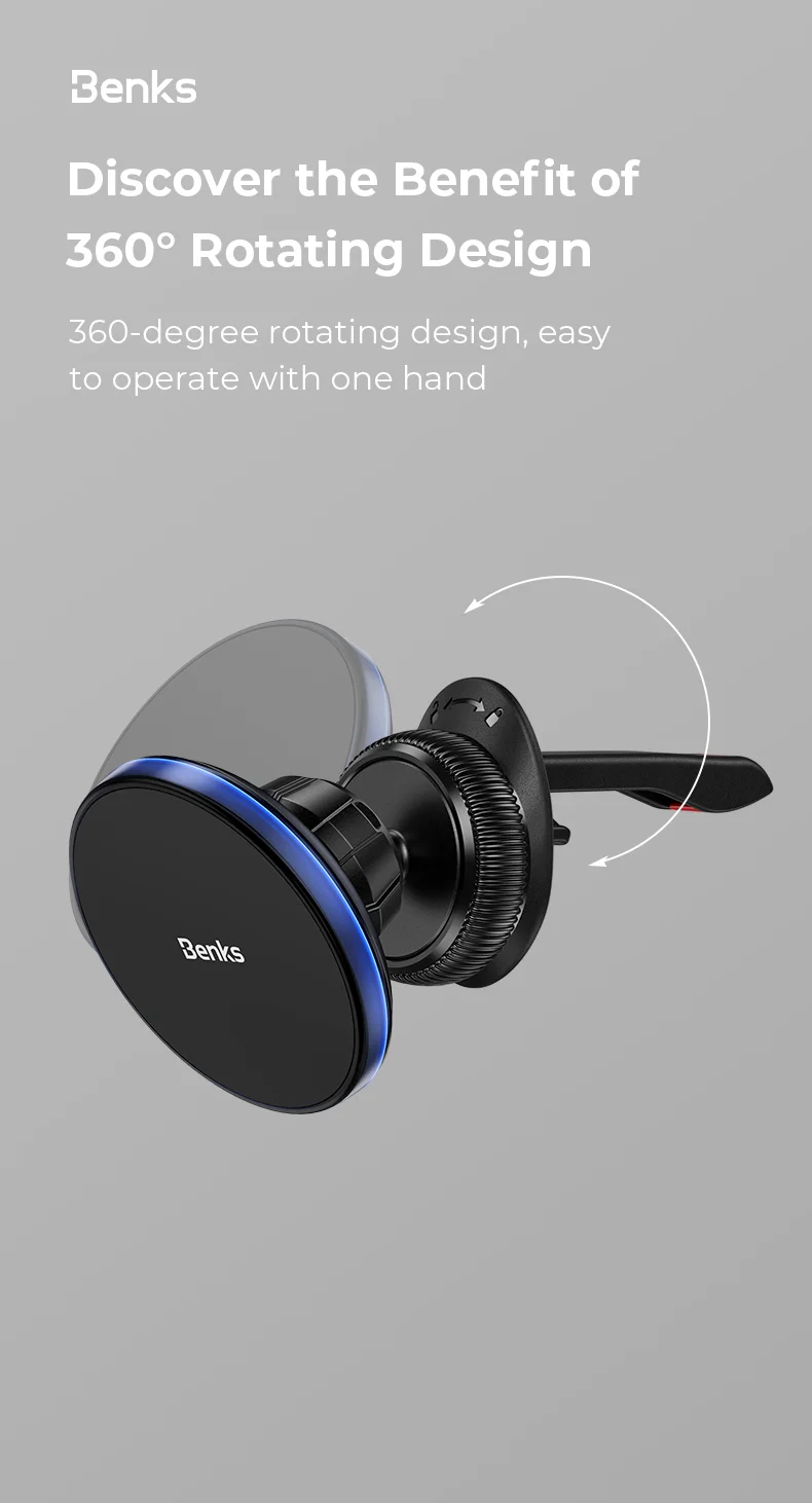 Patirkite neprilygstamą patikimumą su šiuo ,,Benks" magnetiniu automobiliniu laikikliu. Sukurtas dinamiškiems vairuotojams, jis užtikrina stabilią ir saugią prietaisų įkrovimo aplinką net ir nelygiausiuose keliuose.
