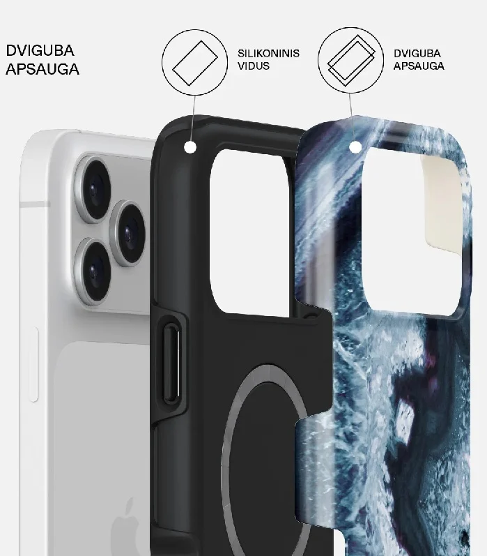 Šis dėklas sužavi savo elegantišku pilko marmuro raštu ir subtiliais, vėsiais melsvais tonais. Tai dizainas, kuriame susilieja natūralus grožis ir moderni estetika – švelniai banguojantys, šerkšną primenantys marmuro sūkuriai sukuria užburiantį, svajingą vaizdą. Kiekviena linija ir spalvos perėjimas pabrėžia harmoniją, kuri lengvai įsilieja į bet kurį stilių ir suteikia išskirtinumo.
