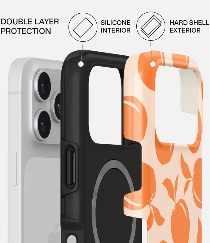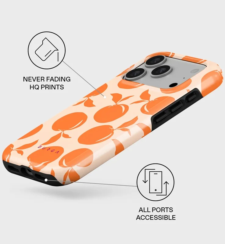 „Peach Fuzz“ kolekcija puošia ryškiai oranžiniai, prinokę persikai, atrodantys tarsi ką tik nuskinti iš saulės nutviekstos giraitės. Jų švelnios tekstūros ir sodrių spalvų derinys suteikia Jūsų ,,iPhone 17 Pro Max'' išskirtinio stiliaus ir saldžios vasariškos energijos.