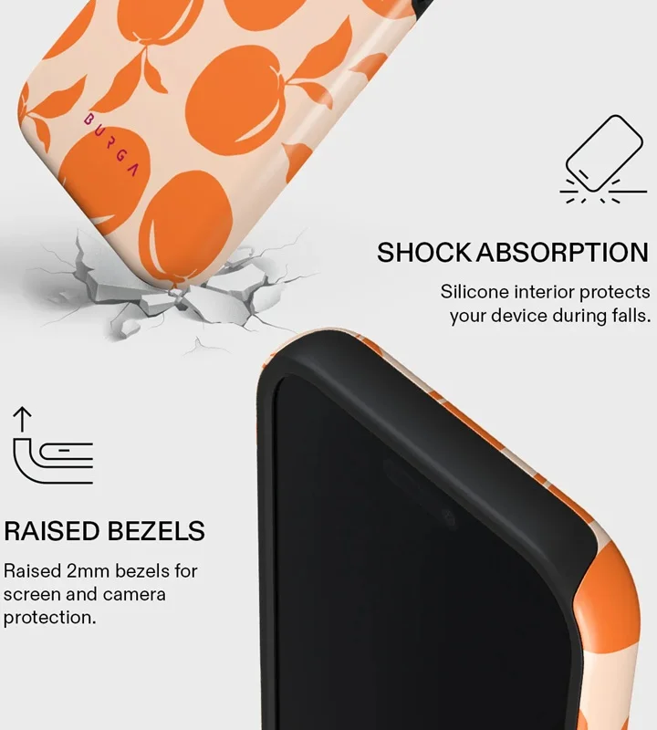 ,,Burga iPhone 17 Pro Max Tough MagSafe Peach Fuzz'' dėklas - tai daugiau nei telefono dėklas – tai saulės nubučiuotos nuotaikos, gaivaus persikų aromato ir nerūpestingo vasaros žavesio įkvėptas aksesuaras, kuris kiekvienai dienai suteikia šilumos bei pozityvumo.