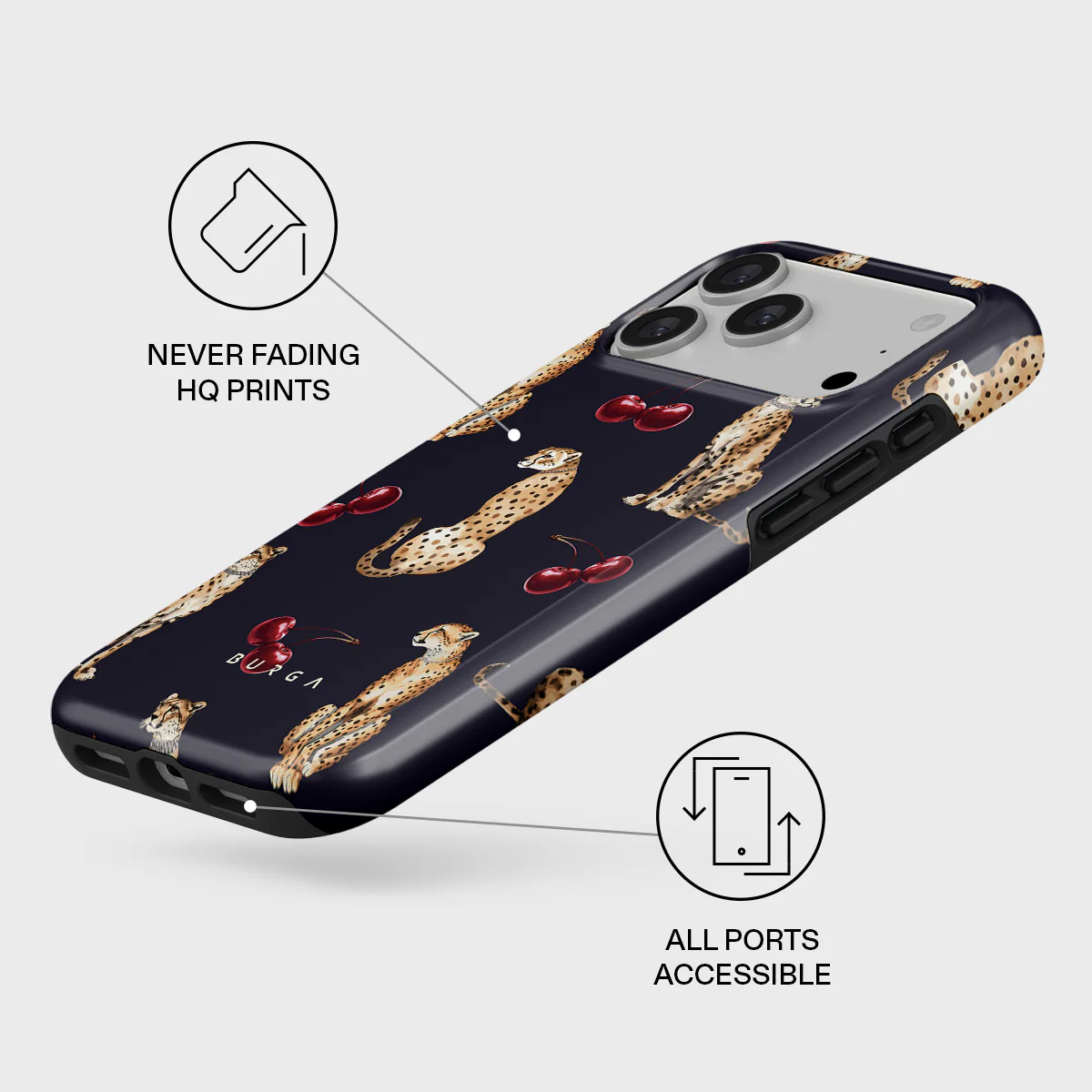 Suteikite savo elegantiškam iPhone 17 Pro veržlumo su „Cougar“ dizainu. Šis dėklas sukurtas tiems, kurie veikia sklandžiai ir užtikrintai. Drąsus gepardo raštas su vyšnių akcentais puikiai dera prie iPhone 17 Pro modelio, o „Tough“ konstrukcija garantuoja saugumą.
