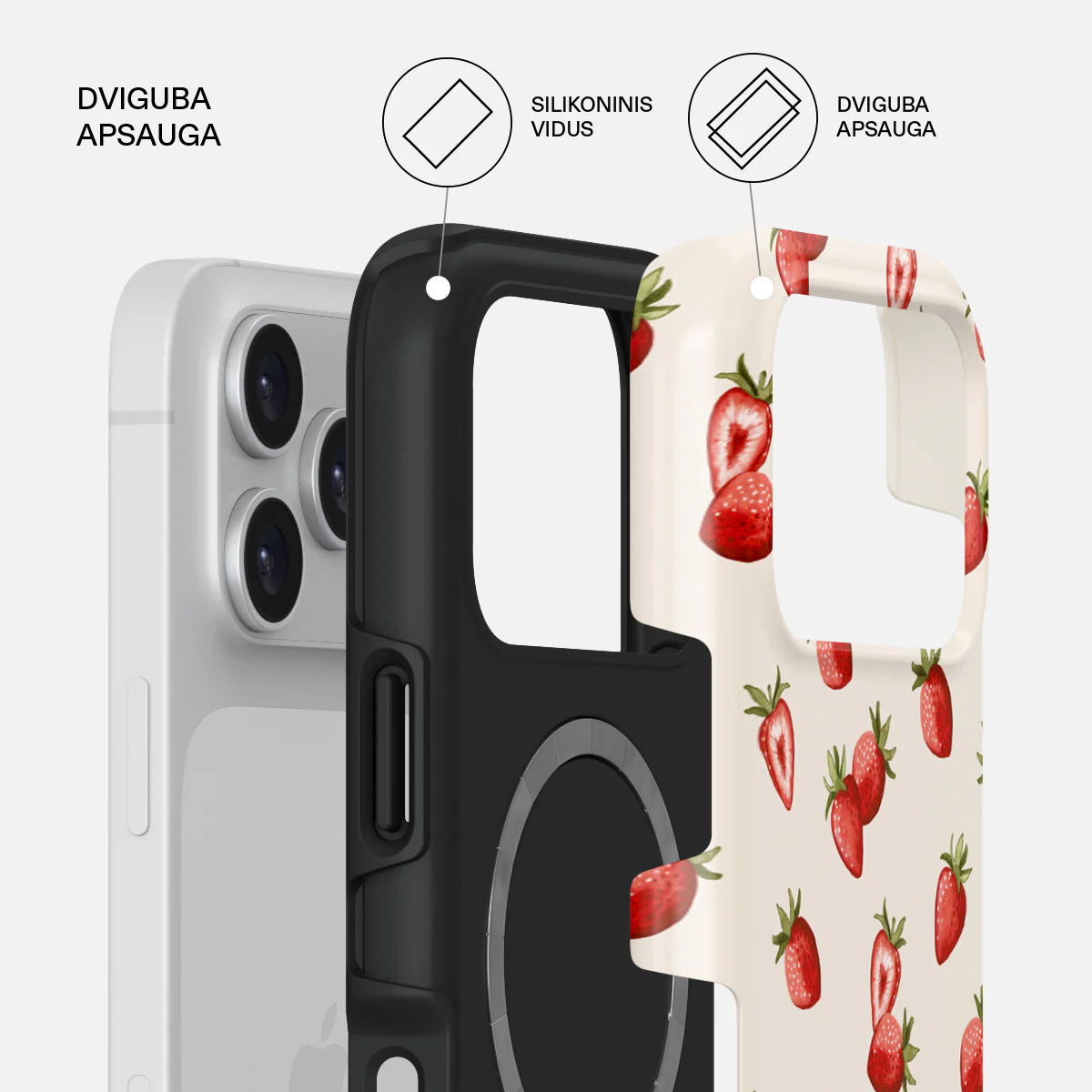 - Visapusiška apsauga: Dėklas apgaubia telefoną iš visų pusių.