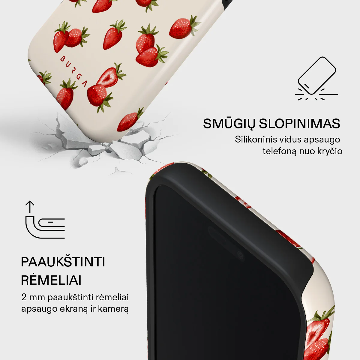 ,,Burga“ apsauginiai dėklai pasižymi ne vien išvaizda. Naudojamos tik aukščiausios kokybės medžiagos, užtikrinančios: