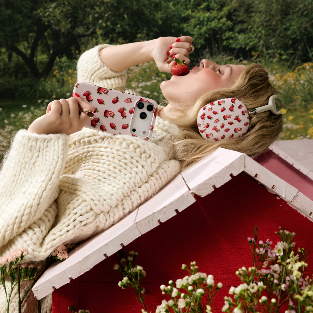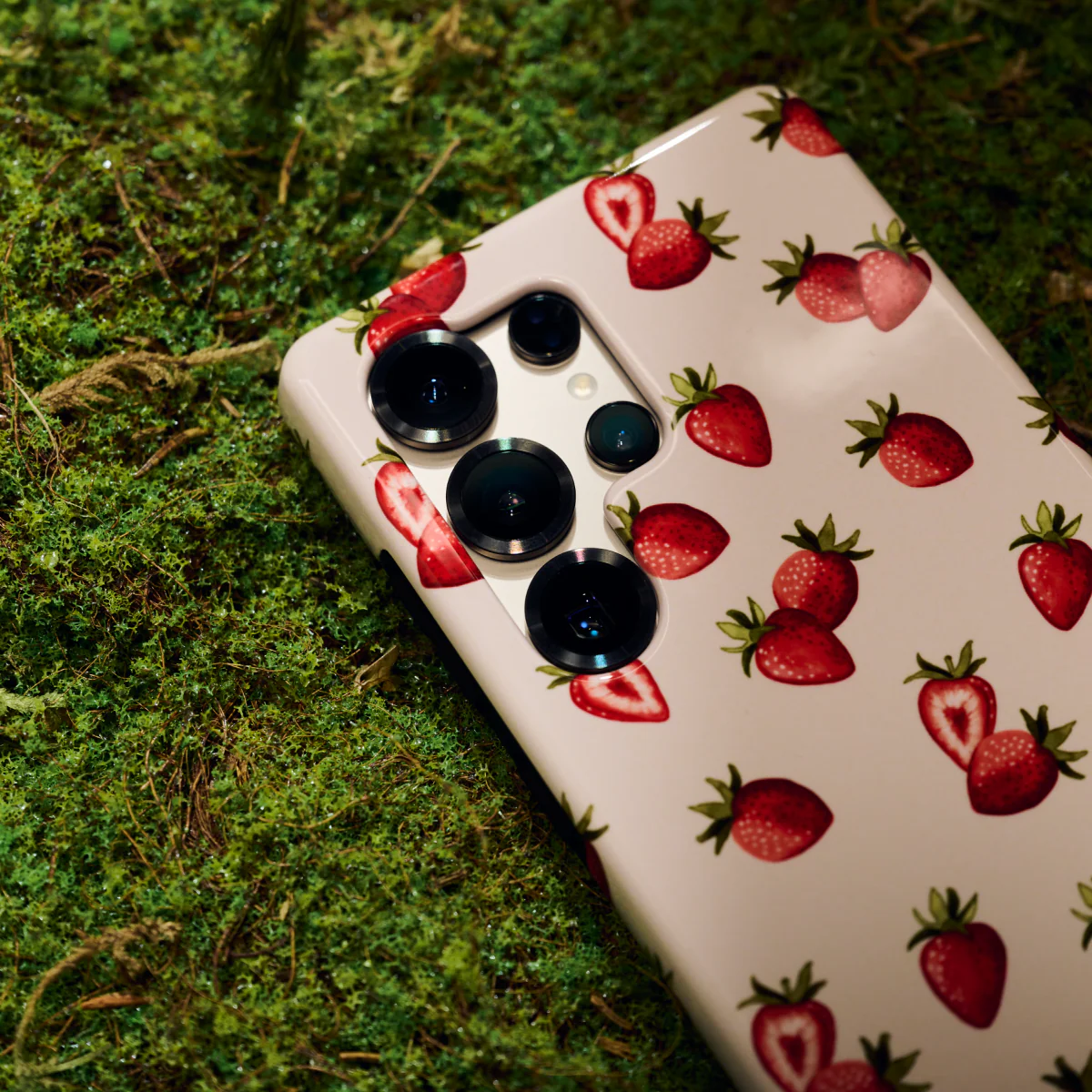 Pasimėgaukite naujo braškių tematikos telefono dėklo žaviu charakteriu. Šis dėklas ne tik gražiai atrodo, žavingas viso paviršiaus raštas su sultingomis, prinokusios braškėmis suteikia kasdienybei saldumo.