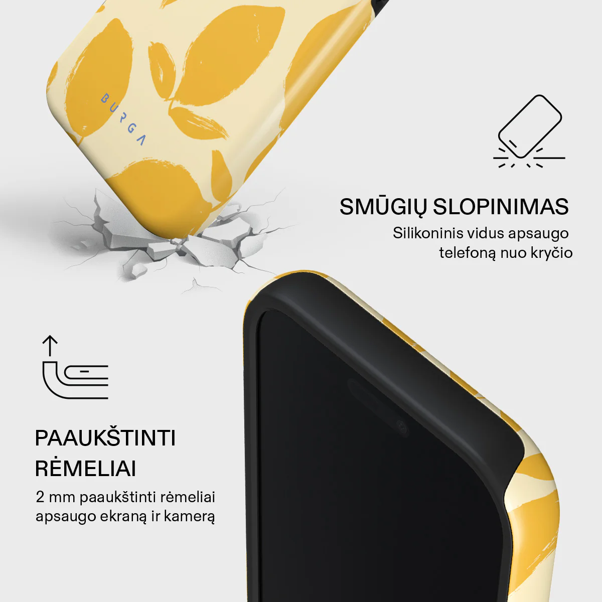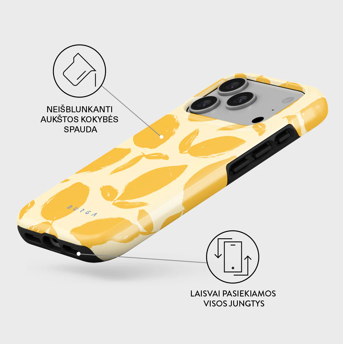 Rinkitės ,,Burga iPhone 17 Pro Tough MagSafe Lemon Tart“ dėklą ir mėgaukitės išskirtiniu dizainu bei maksimalia apsauga.