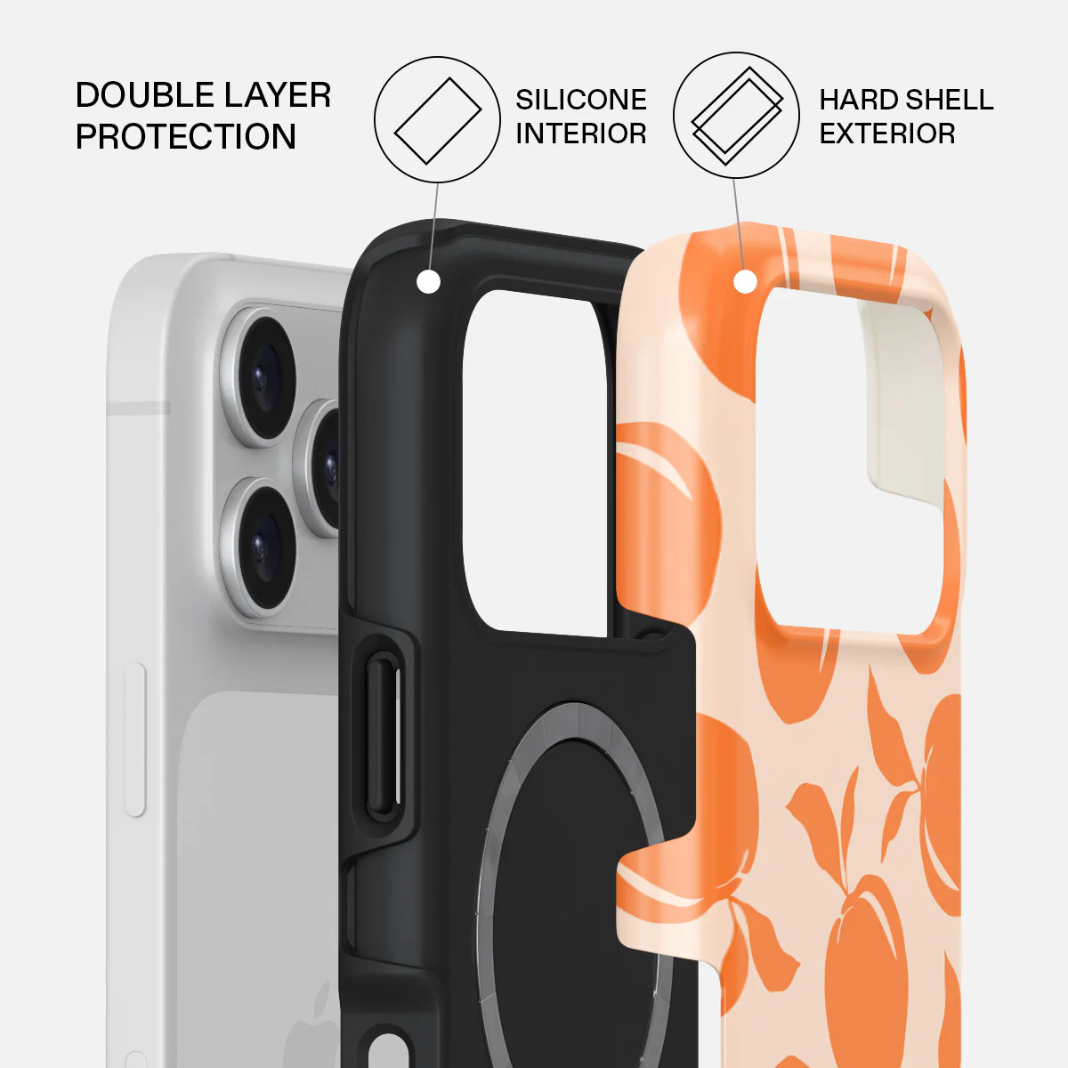 Leiskite savo telefonui spindėti vasariška nuotaika ištisus metus! ,,Burga iPhone 17 Pro Tough MagSafe Peach Fuzz'' dėklas tampa ne tik apsauga, bet ir kasdieniu geros energijos akcentu.