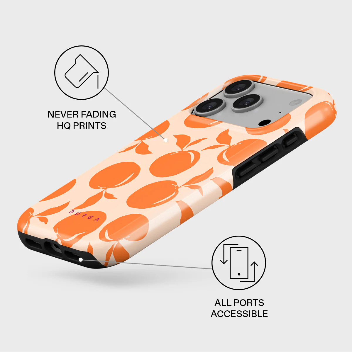 ,,Burga iPhone 17 Pro Tough MagSafe Peach Fuzz'' dėklas - tai daugiau nei telefono dėklas – tai saulės nubučiuotos nuotaikos, gaivaus persikų aromato ir nerūpestingo vasaros žavesio įkvėptas aksesuaras, kuris kiekvienai dienai suteikia šilumos bei pozityvumo.