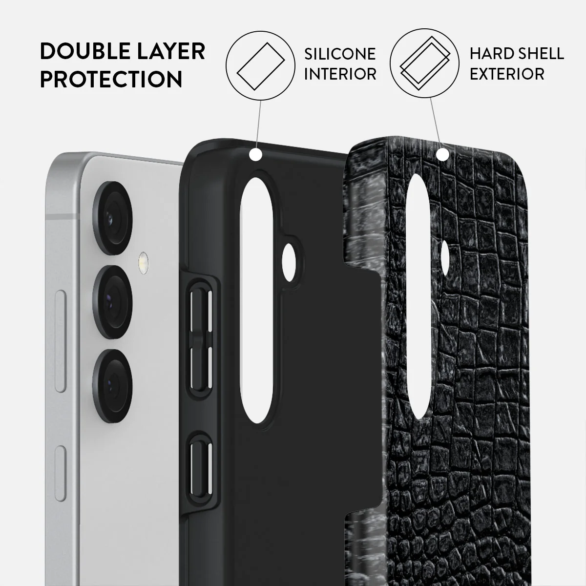 ,,Burga Samsung Galaxy S25" dėklas ,,Reaper's Touch" pasižymi klasikiniu ypač tamsios žalios spalvos gyvatės odos dizainu. Pavojingi gyvūnų raštai suteiks Jūsų stiliui pasitikėjimo ir prabangos, o telefoną pavers madingu aksesuaru. Šis dėklas ne tik suteiks jūsų telefonui prabangų ir stilingą įvaizdį, bet tvirtai apsaugos nuo įbrėžimų ir skilimų.