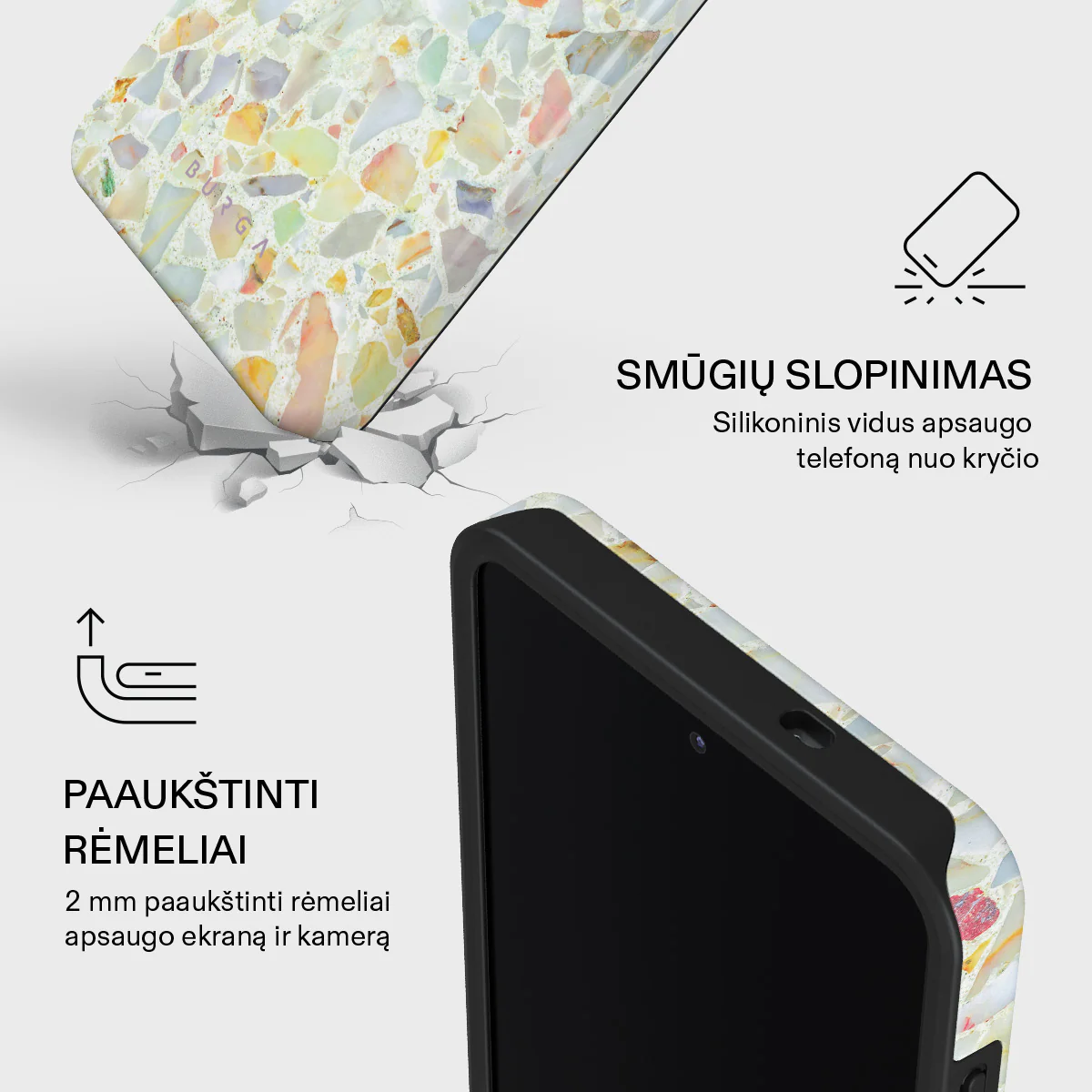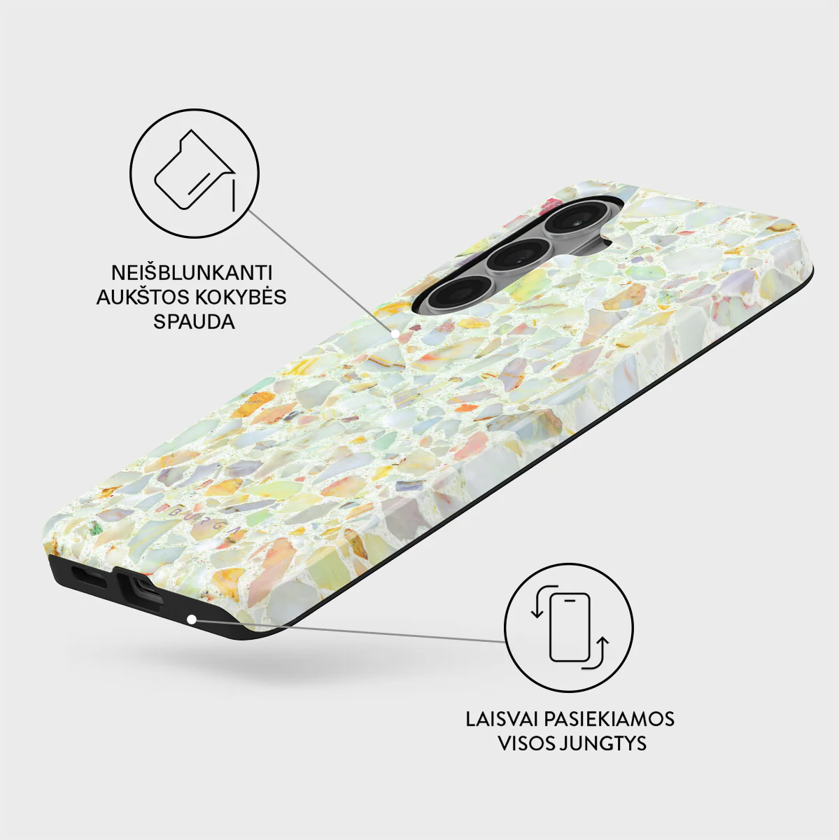 Burga apsauginiai dėklai pasižymi ne vien išvaizda. Naudojamos tik aukščiausios kokybės medžiagos, užtikrinančios: