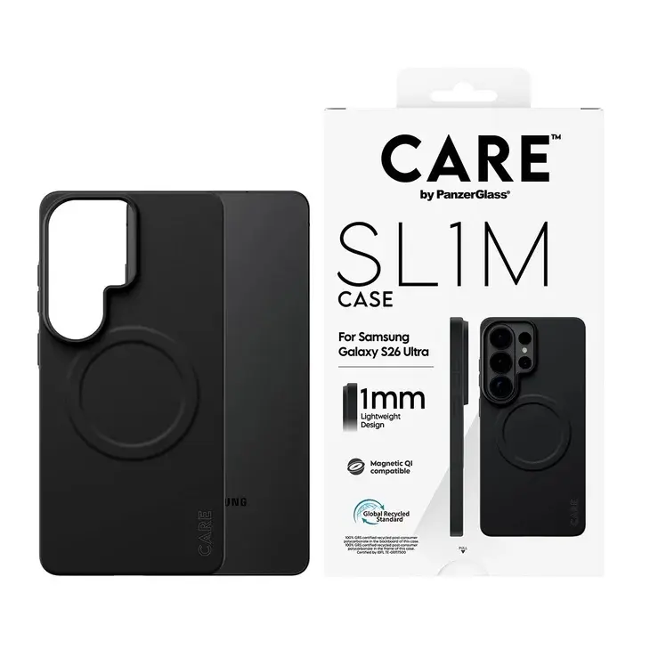 Rinkis stilingai tvirtą bei gamtą tausojantį ,,CARE by PanzerGlass Samsung Galaxy S26 Ultra Super Slim Magsafe"  dėklą - parodyk pasauliui, kad jis tau rūpi.
