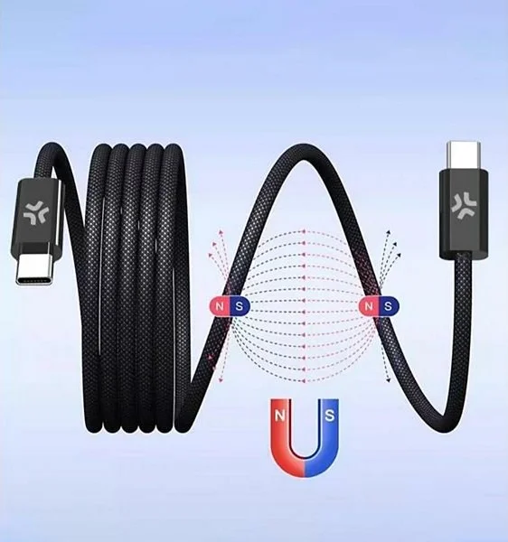,,Celly Magnetic USB-C į USB-C, 1m - 60W'' įkrovimo laidas pagamintas iš juodos pintos medvilnės apdailos, kuri suteikia elegantišką išvaizdą ir užtikrina didesnį atsparumą nusidėvėjimui bei susipainiojimui. Pintas paviršius ne tik padidina ilgaamžiškumą, bet ir apsaugo vidinius laidus nuo galimų pažeidimų. 1 metro ilgis puikiai tinka kasdieniam naudojimui – namuose, biure ar kelionėje. Išskirtinė savybė - integruota magnetinė sistema, kuri palengvina laido suvyniojimą ir tvarkingą laikymą, išvengiant mazgų ir netvarkos.