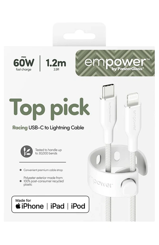 „Empower by PanzerGlass® Racing“greito įkrovimo laidas su „Lightning“ jungtimi |