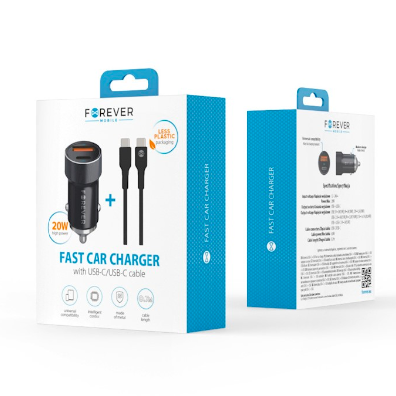Šis „Forever“ automobilinis įkroviklis yra galingas įrenginys, kuris suteikia efektyvaus ir patogaus įkrovimo galimybę. Su vienu USB-C lizdu ir vienu USB lizdu jame yra 20 W galia, kuri užtikrina ypač greitą ir efektyvų įkrovimą. Taip pat į komplektą įeina 60 W USB-C - USB-C įkrovimo laidas. Šis juodas įkroviklis yra puikus pasirinkimas, norint užtikrinti, kad jūsų įrenginiai būtų visada paruošę naudoti.