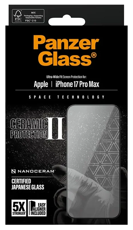 Apsaugokite savo telefono ekraną įsigydami šį ,,Panzerglass iPhone 17 Pro Max Ceramic" apsauginį stikliuką.