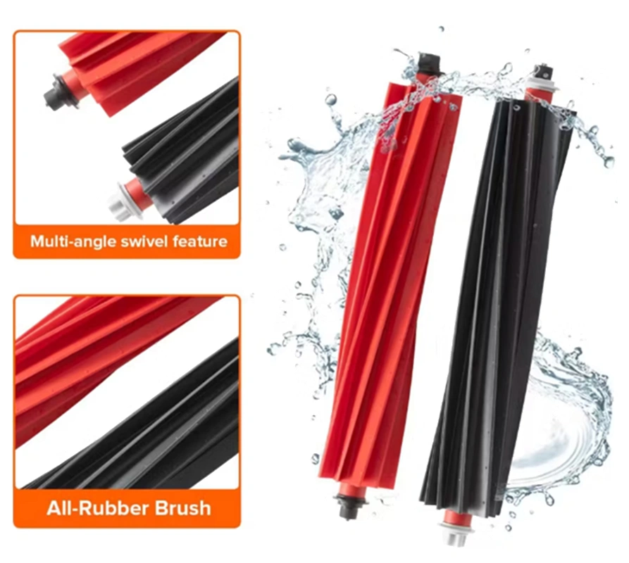 Šis pagrindinis „Roborock“ šepetys dėl specialaus dizaino itin efektyviai surenka nešvarumus ir turi apsaugą nuo plaukų įsipainiojimo. Du priešingomis kryptimis besisukantys guminiai voleliai geriau surenka nešvarumus nuo įvairių paviršių. Vienas volelis atkela nešvarumus, o kitas juos nukreipia tiesiai į siurbimo angą. Šepečio voleliai pagaminti tik iš gumos (neturi šerelių), todėl plaukai ar augintinių kailis į juos neįsivelia, o yra nukreipiami į dulkių talpyklą. Dėl stipraus sąlyčio su paviršiumi ši dviejų šepečių sistema giliau išvalo kilimus, ištraukdama giliai įstrigusias dulkes. Šepetys prisitaiko prie grindų aukščio skirtumų, užtikrindamas pastovią siurbimo galią tiek ant kietų grindų, tiek ant storų kilimų.