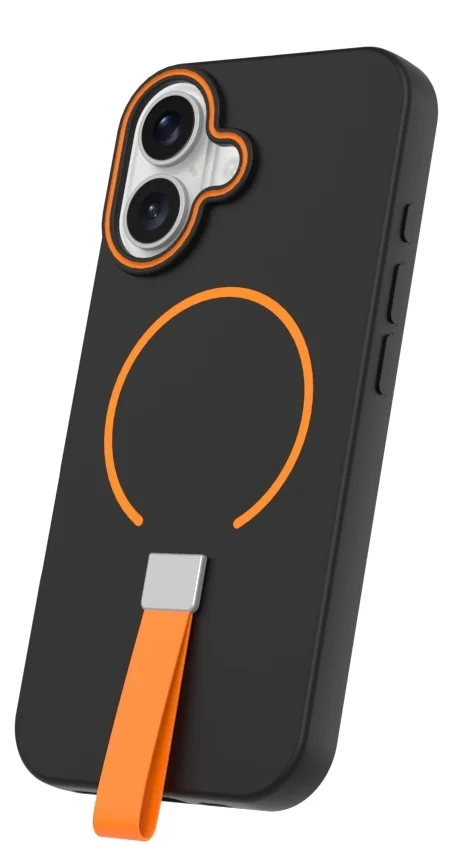 Dėklas komfortiškas - patogus laikyti rankoje. ,,Loop'' - oranžinė silikoninė juostelė - atlieka praktiško piršto laikiklio funkciją, palengvina telefono naudojimą  viena ranka fotografuojant ar  žiūrint vaizdo įrašus.