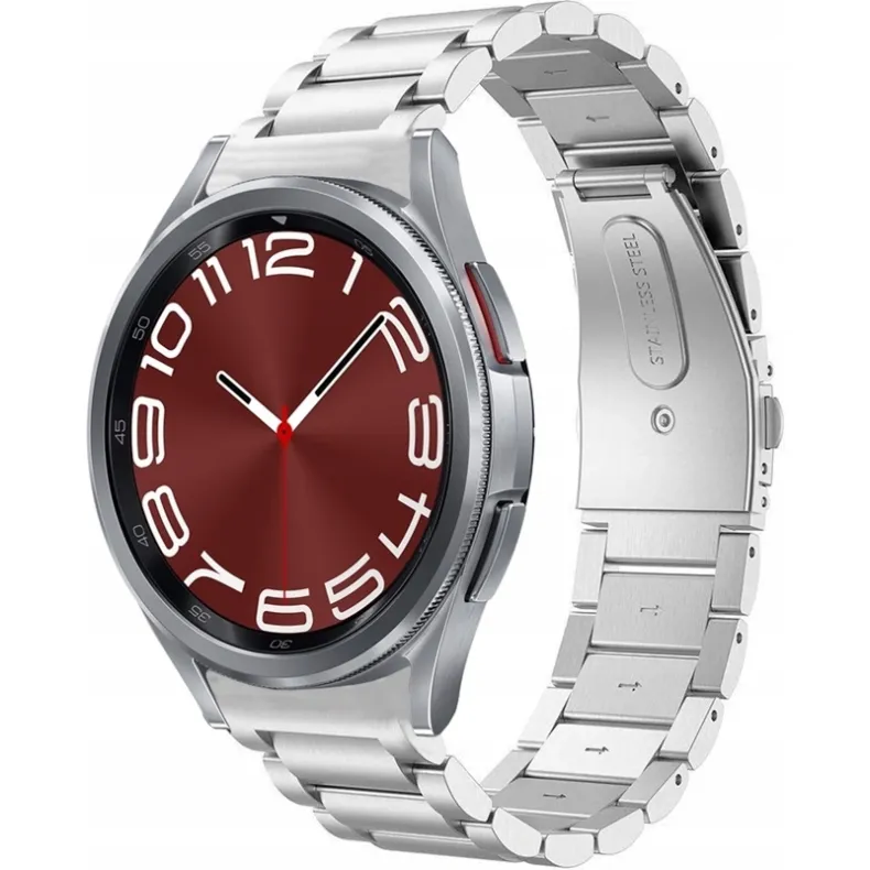 "Techprotect Samsung Watch 40 | 42 | 44 | 45 | 46 mm stainless dirželis" pagamintas iš aukštos kokybės nerūdijančio plieno, užtikrinančio ne tik išskirtinį patvarumą, bet ir elegantišką išvaizdą. Dėl minimalistinio, universalaus dizaino šis dirželis tinka ir vyrams, ir moterims, taip pat yra puikus pasirinkimas tiek kasdienai, tiek ir ypatingoms progoms.  Dirželį galima reguliuoti pagal riešo apimtį, jis turi metalinį užsegimą, kuris leidžia jį lengvai atsegti, bet taip pat užtikrina, kad išmanusis laikrodis tvirtai laikosi ant riešo ir neatsisega atsitiktinai. Šis dirželis yra sukurtas specialiai "Samsung Watch" išmaniesiems laikrodžiams, todėl puikiai atitinka jų korpuso formą ir priglunda nepalikdamas tarpelio. Suderinamas su "Samsung Watch" 4, 5, 6 ir 7 serijų išmaniaisiais laikrodžiais, kurių dydžiai yra  40, 42, 44, 45 arba 46mm.